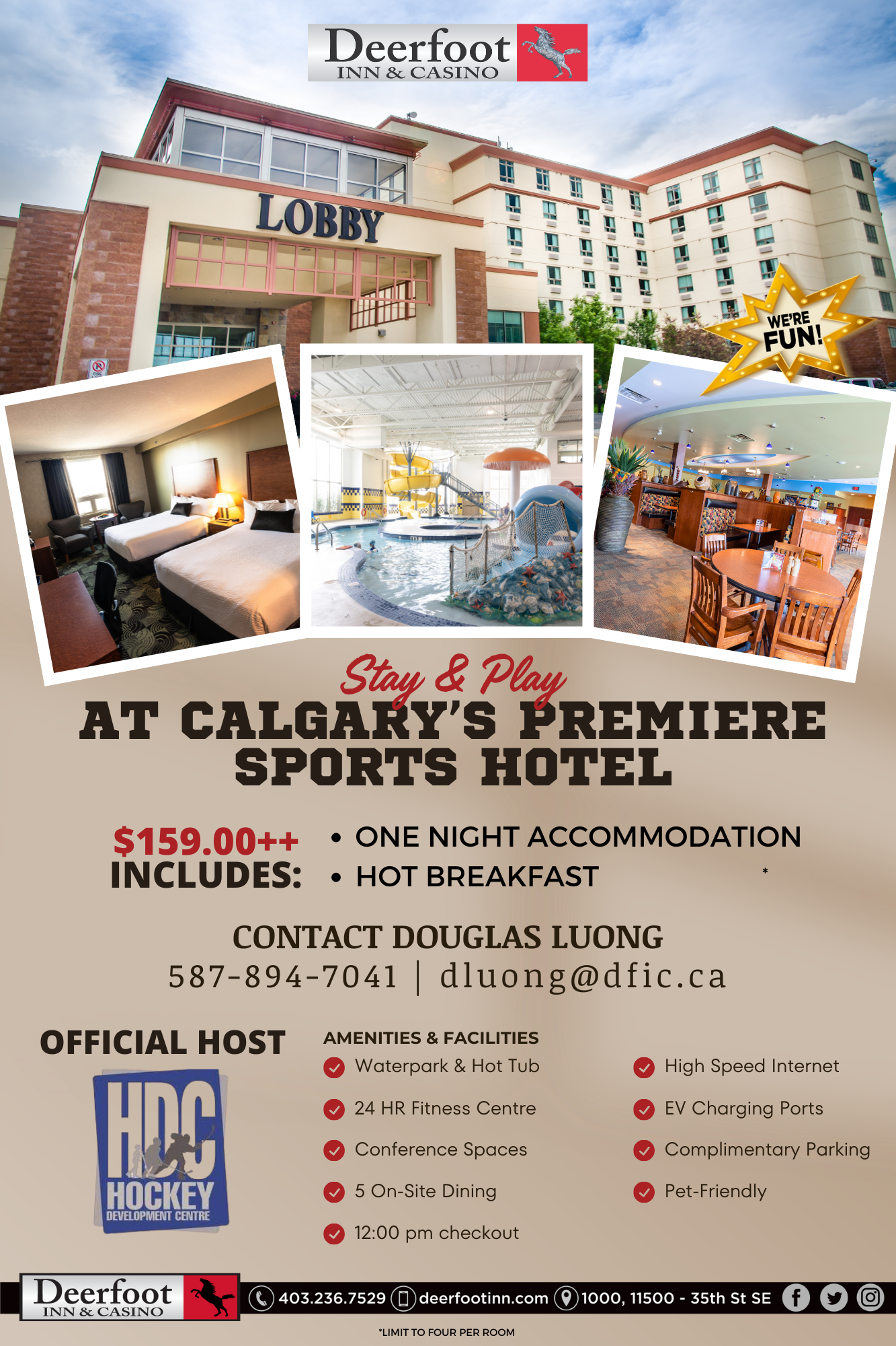 Our partnership hotels provides value and amazing amenities in a fantastic location. Deerfoot Inn and Casino11500 35 Street S.E. - #1000Calgary, AB T2C 0J4