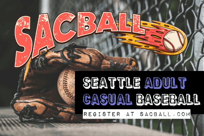 Seattle Adult Casual Baseball League (Sacball) is a casual sandlot baseball league in Bellevue, WA for adults (18+) with a competitive spirit and a love of baseball. We do not keep stats, dictate playing time, set positions, or keep rosters. Every week, team captains form two teams from all the registered players that attend.