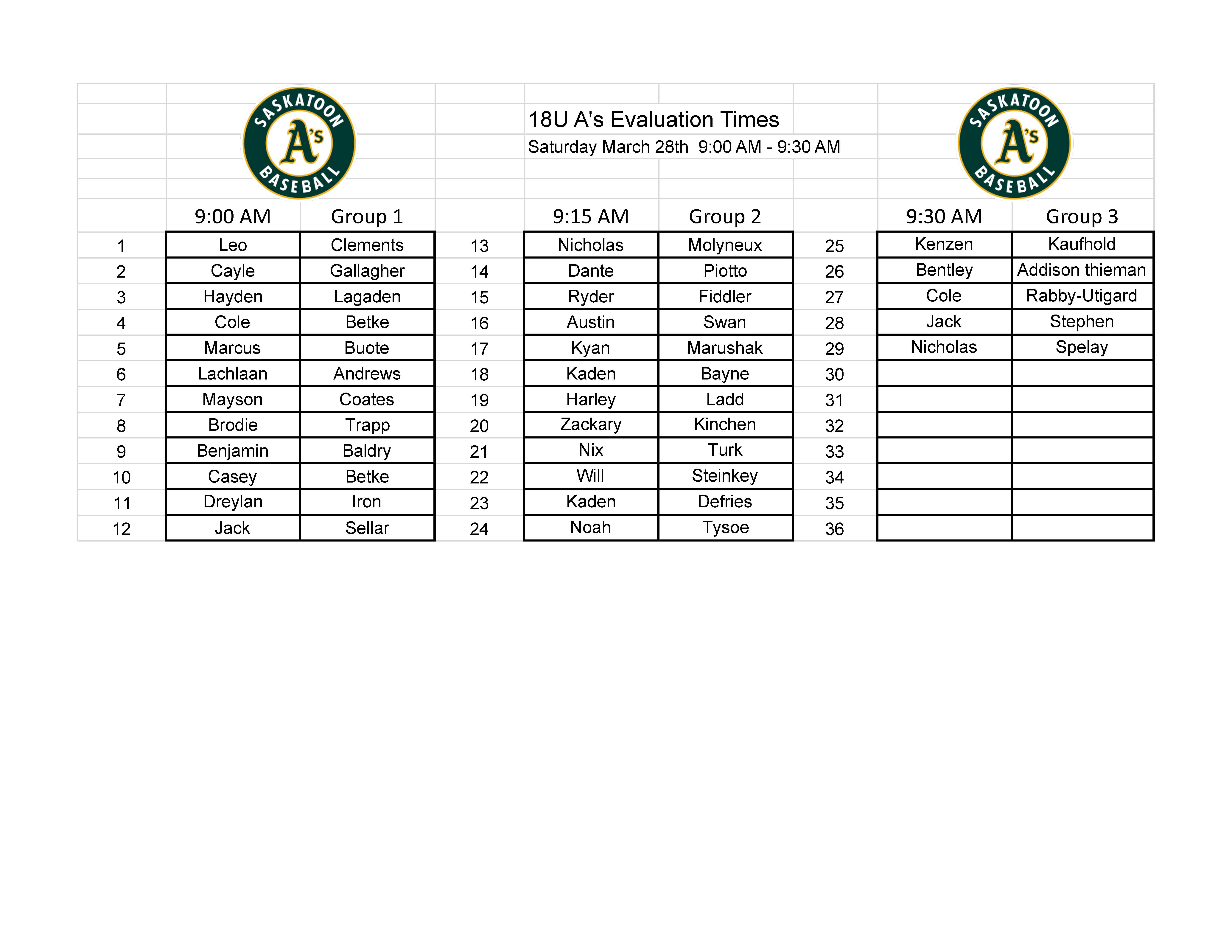 *** Please do not wear any branded academy (ie: Going Yard, Inside Pitch, Saskatoon Berries, etc...) clothing to the evaluation sessions.