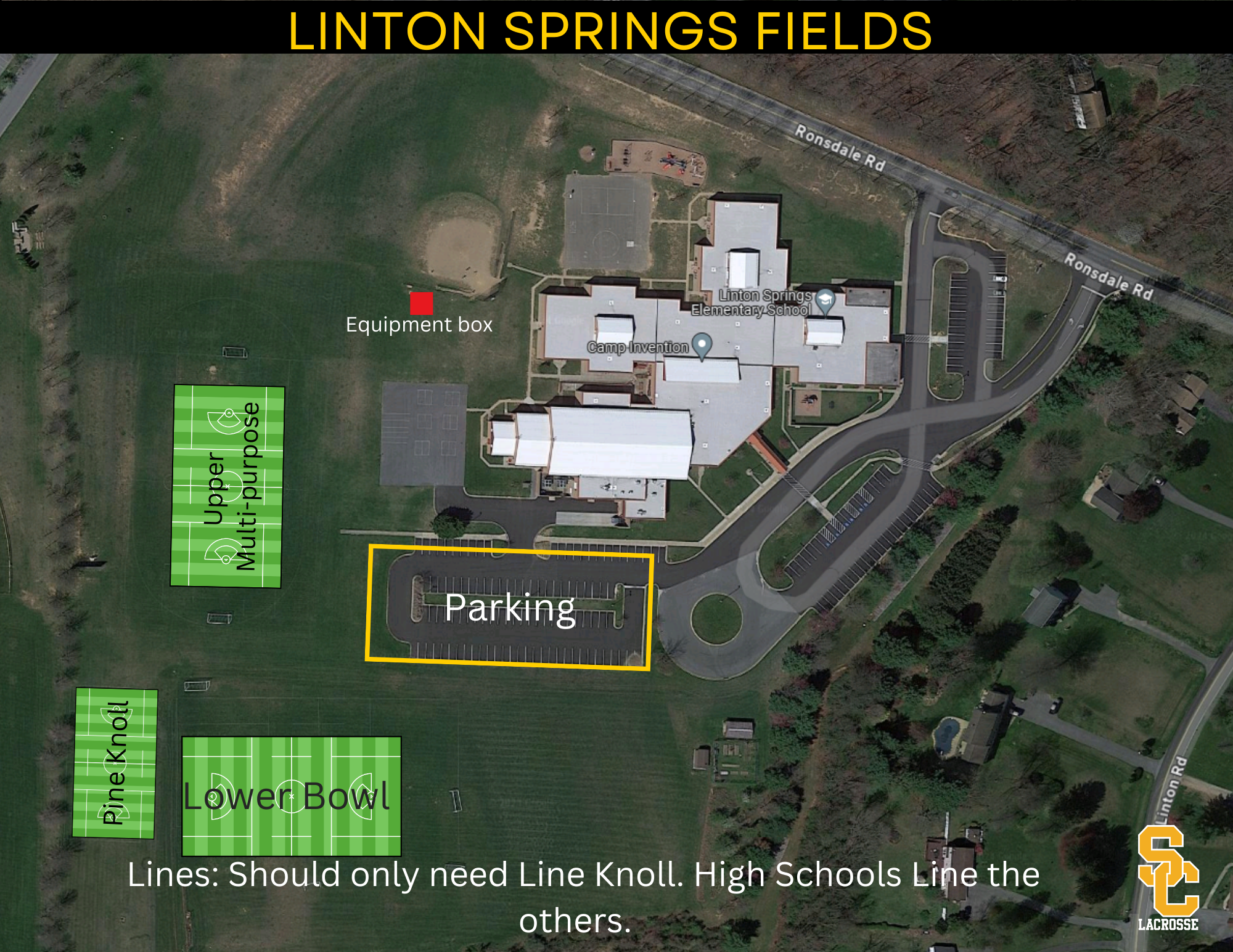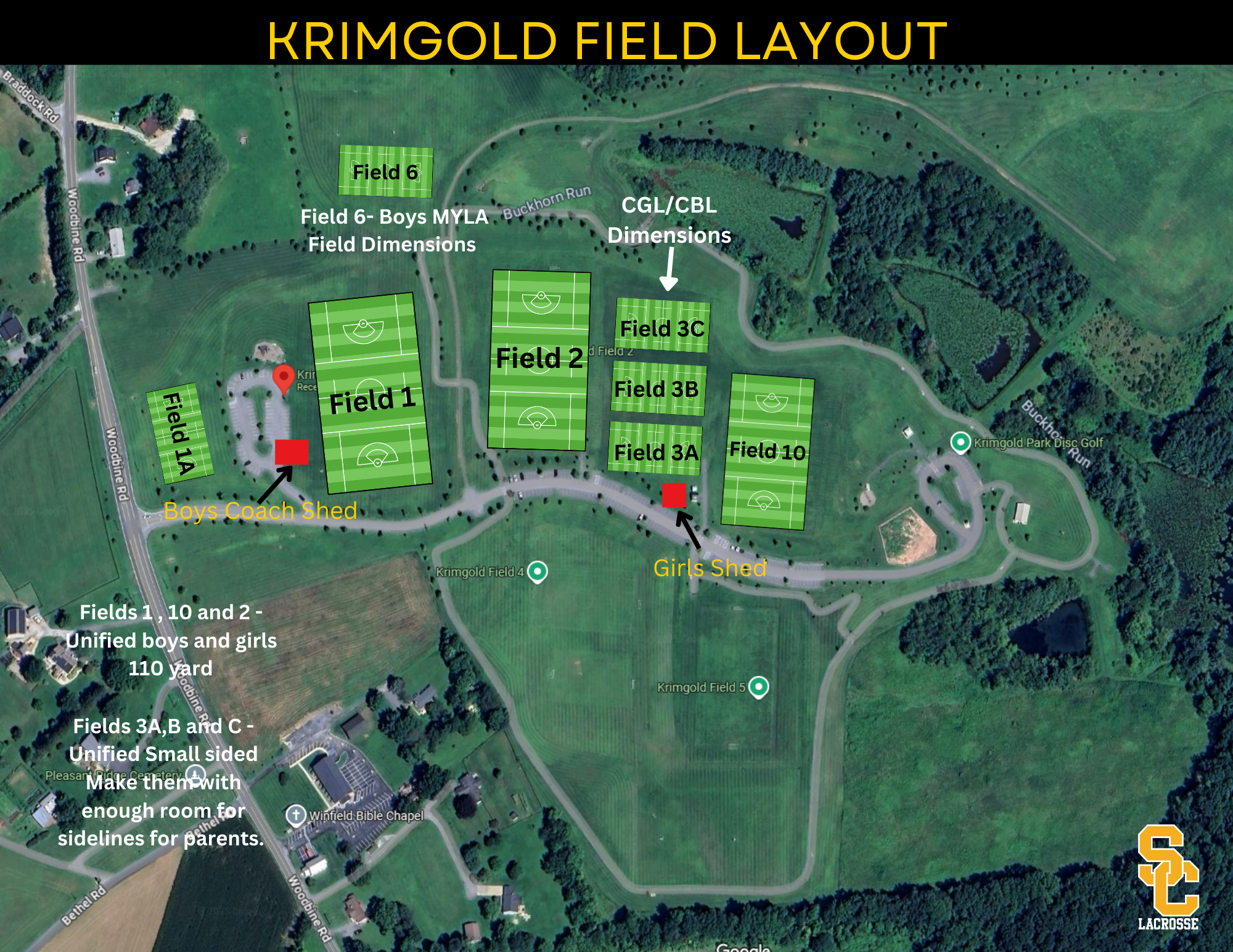 SCYL will host a majority of its practices at Krimgold Park. We also have field space at Winfield Elementary, South Carroll High School and Linton Springs Elem.