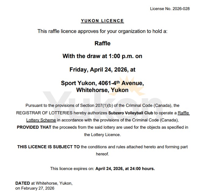 Our raffle licence #2026-028